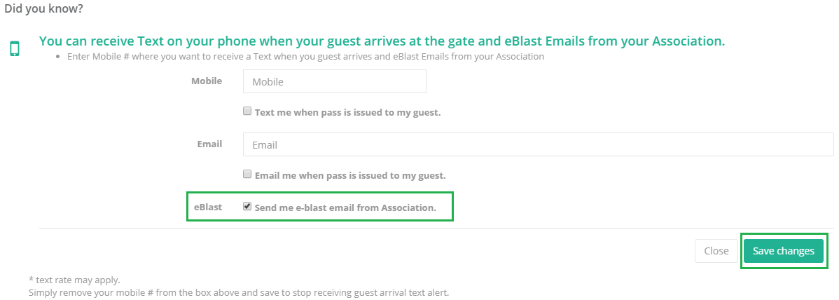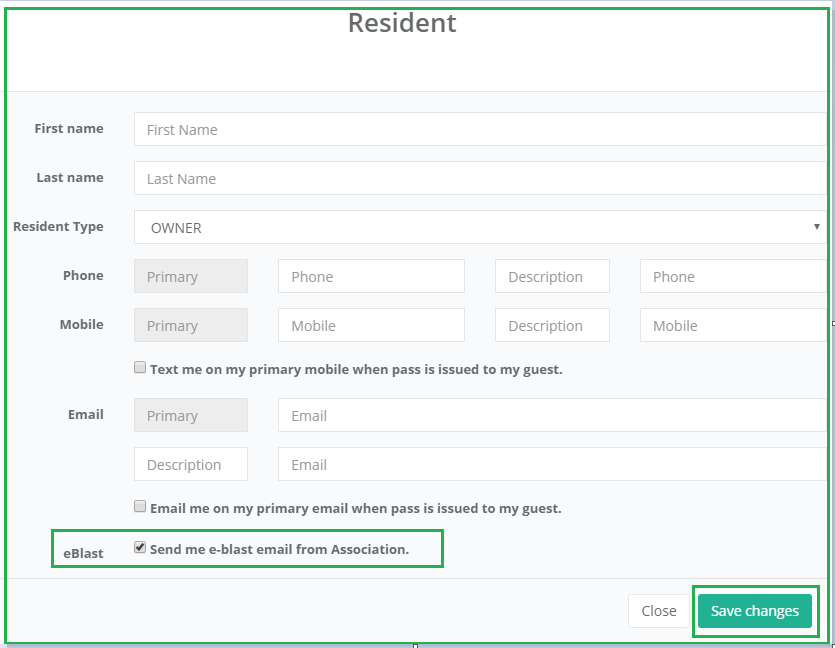 GateMasters eBlasts function.Primary residents are enrolled for eBlast by default.